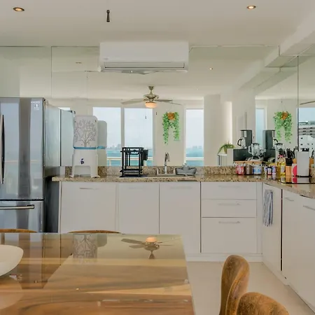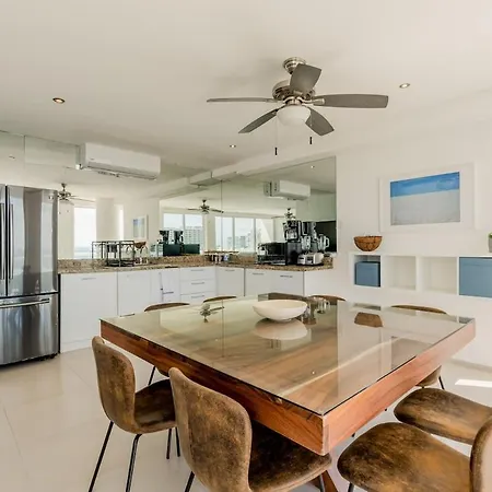 Com restaurante, apartamento Seaslde Beachfront 4 Bdr By Casa Paraiso Cancún de 4 quartos se situa no bairro Puerto Juarez em Cancún a uma distância de aproximadamente 10 minutos andando do Parque de las Palapas e a 3 km de locais de interesse cultural como a Plaza Ceviche. Neste apartamento ideal para família de 180 m^2, os hóspedes têm acesso para recepção 24 horas, bem como uma oportunidade para desfrutar das vistas para a piscina.